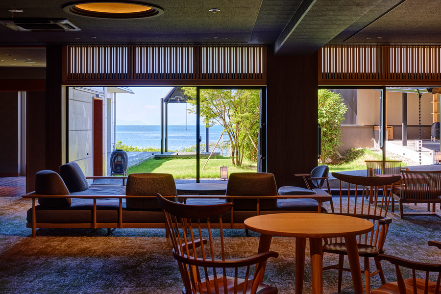 After warming your body from the inside out in the hot spring, take a break and cool down on the terrace deck chairs. The soft breeze coming off Lake Biwa will lull you into contentment.